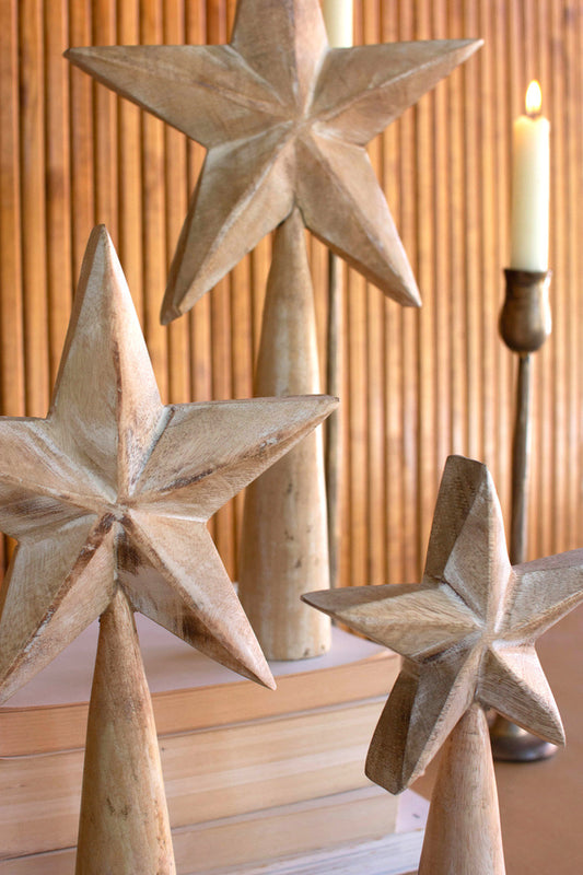 Set Of Three Wooden Table Top Stars - Whitewash... Set Of Three Wooden Table Top Stars - Whitewash By Kalalou