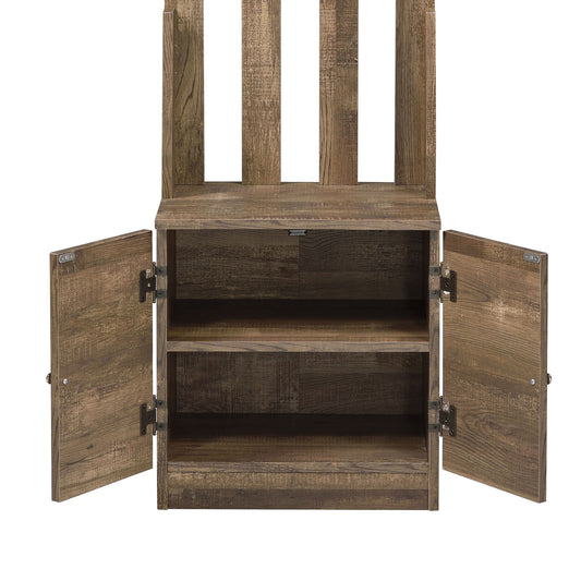 Wooden Hall Tree With 8 Hooks And Bottom Compar... Wooden Hall Tree With 8 Hooks And Bottom Compartment, Weathered Brown By Benzara