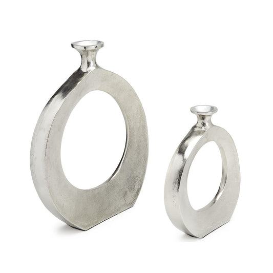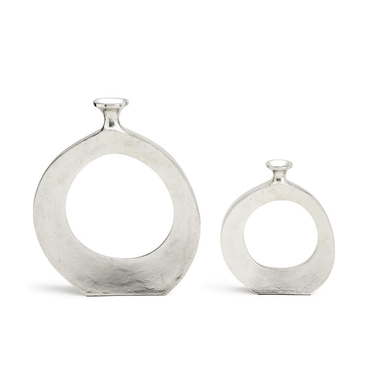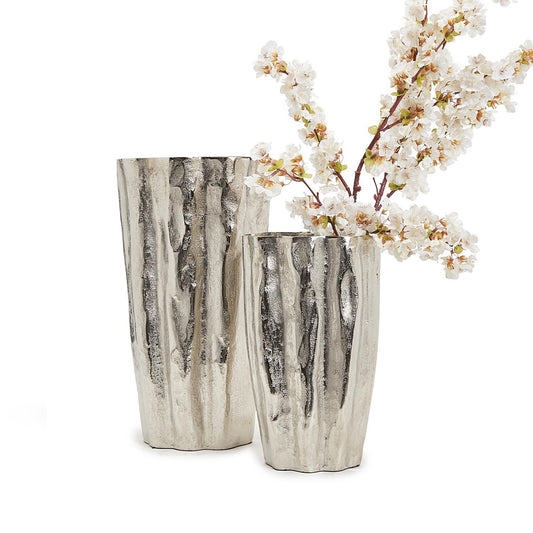 9" Hammered & Etched Silver Round Vase Set Of 2... 9" Hammered & Etched Silver Round Vase Set Of 2 By Tozai Home