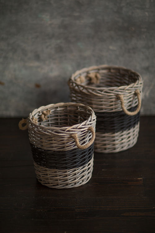 Vagabond Vintage Round Willow Baskets with Blac... Vagabond Vintage Round Willow Baskets with Black Band - Set of 2