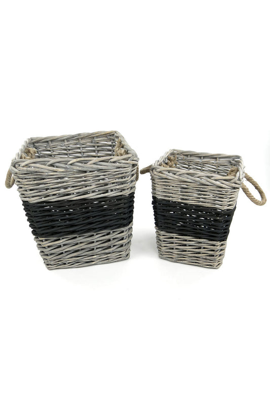 Vagabond Vintage Square Willow Baskets with Bla... Vagabond Vintage Square Willow Baskets with Black Band - Set of 2