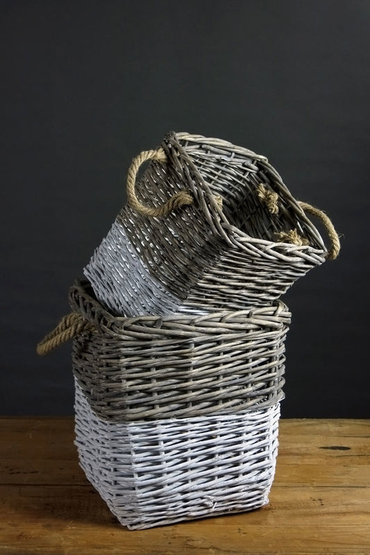 Vagabond Vintage Square Willow Baskets Dipped W... Vagabond Vintage Square Willow Baskets Dipped White
