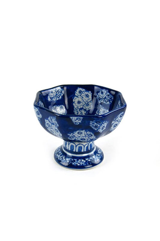 Blue and White Pedestal Bowl Set of 4 by Vagabo... Blue and White Pedestal Bowl Set of 4 by Vagabond Vintage