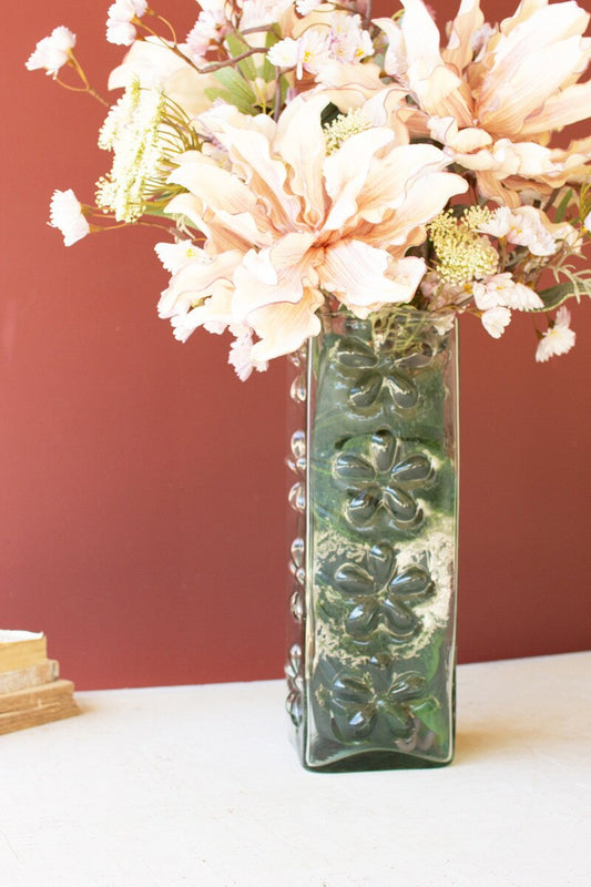 Square Glass Vase With Embossed Flowers (Min 2)... Square Glass Vase With Embossed Flowers (Min 2) By Kalalou