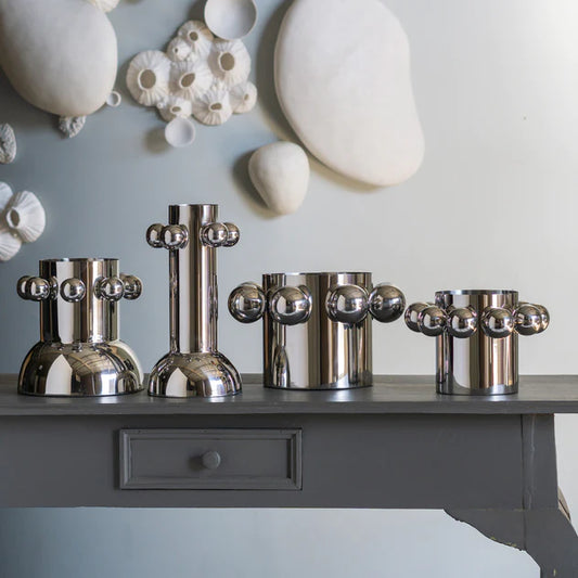 Silver Bucchero Style Handled Vessel Set Of 4 B... Silver Bucchero Style Handled Vessel Set Of 4 By Tozai Home