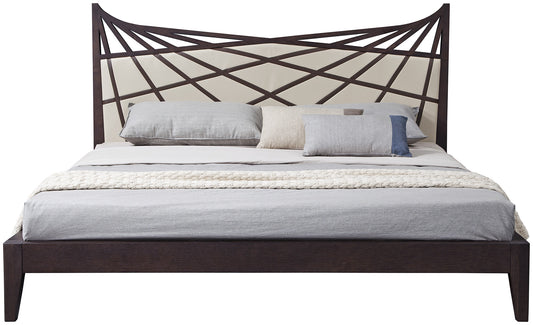 47' Brown Veneer And Beige Bonded Leather Queen... 47' Brown Veneer And Beige Bonded Leather Queen Bed By Homeroots