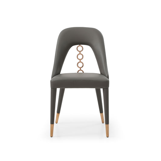 Set of Two Gray Faux Leather Dining Side Chairs... Set of Two Gray Faux Leather Dining Side Chairs With Rose Gold Accents By Homeroots