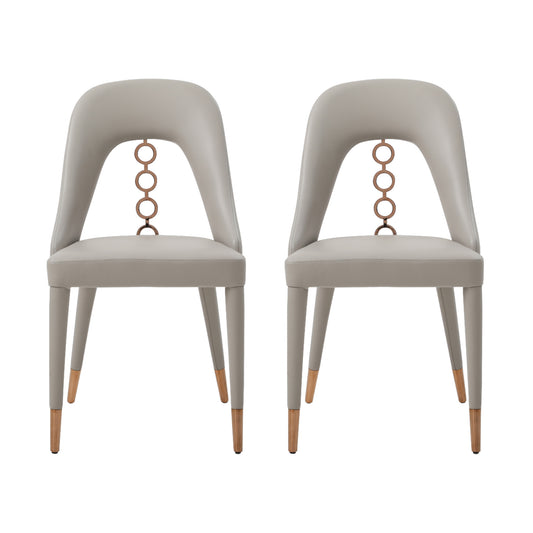 Set of Two Light Gray Faux Leather Dining Side ... Set of Two Light Gray Faux Leather Dining Side Chairs With Rose Gold Accents By Homeroots