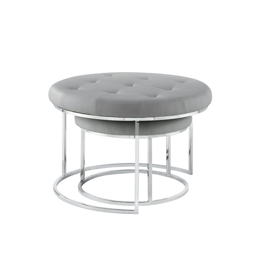 Set of Two Gray Faux Leather and Silver Tufted ... Set of Two Gray Faux Leather and Silver Tufted Round Ottomans By Homeroots