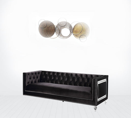 Sold out92" Black Velvet Sofa By Homeroots 92" Black Velvet Sofa By Homeroots