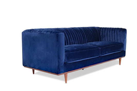 78" Blue Velvet And Gold Sofa By Homeroots 78" Blue Velvet And Gold Sofa By Homeroots