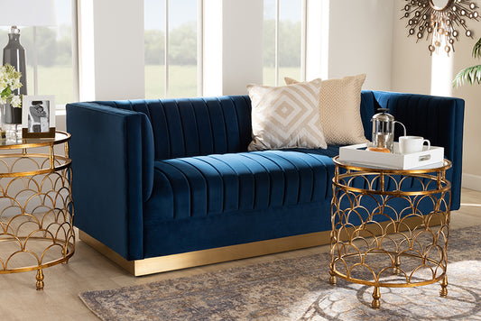 Baxton Studio Kailyn Glam and Luxe Navy Blue Ve... Baxton Studio Kailyn Glam and Luxe Navy Blue Velvet Fabric Upholstered and Gold Finished Chaise
