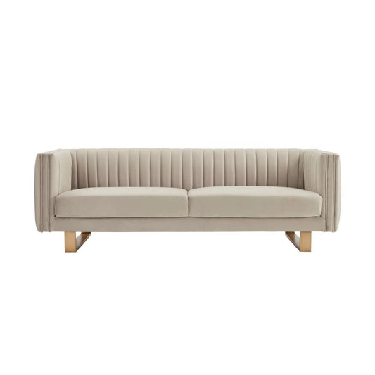 Delilah 86" Beige Velvet Square Arm Sofa with G... Delilah 86" Beige Velvet Square Arm Sofa with Gold Legs By Armen Living