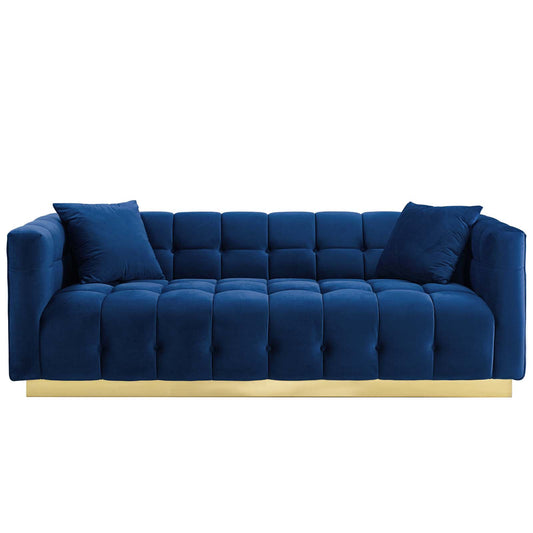 Baxton Studio Loreto Glam and Luxe Navy Blue Ve... Baxton Studio Loreto Glam and Luxe Navy Blue Velvet Fabric Upholstered Brushed Gold Finished Sofa