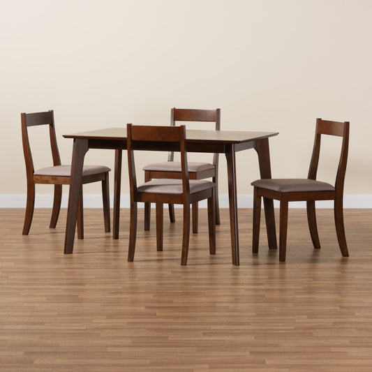 Baxton Studio Amara Mid-Century Modern Warm Gre... Baxton Studio Amara Mid-Century Modern Warm Grey Fabric and Dark Brown Finished Wood 5-Piece Dining Set