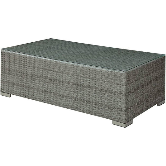 Woven Wicker Rectangular Coffee Table With Temp... Woven Wicker Rectangular Coffee Table With Tempered Glass Tabletop, Gray By Benzara