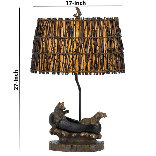 150W 3 Way Bear Canoe Table Lamp With Oval Wick... 150W 3 Way Bear Canoe Table Lamp With Oval Wicker Shade, Antique Bronze By Benzara