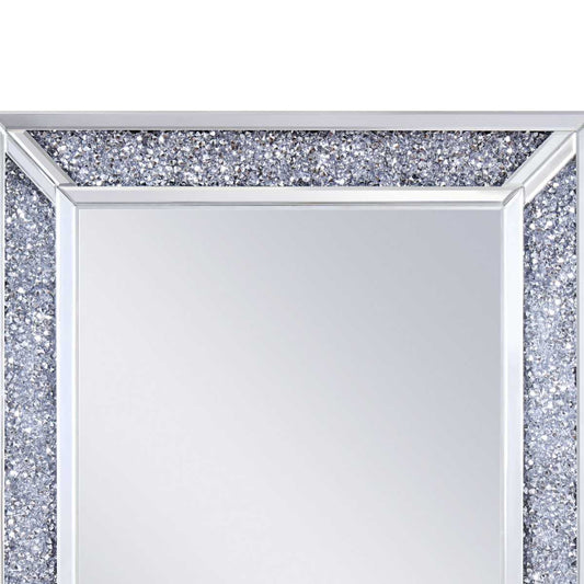 Rectangular Beveled Accent Floor Mirror With Gl... Rectangular Beveled Accent Floor Mirror With Glitter Mosaic Pattern, Silver By Benzara