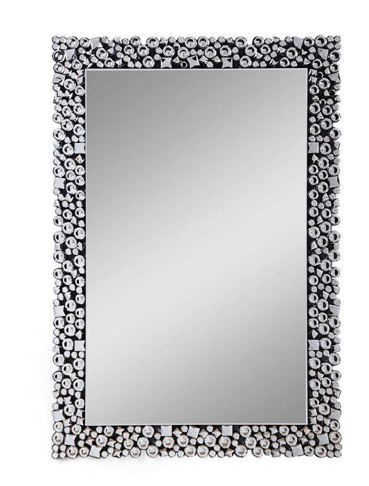 Rectangular Faux Crystal Inlaid Mirrored Wallde... Rectangular Faux Crystal Inlaid Mirrored Walldecor With Wooden Backing, Clear By Benzara