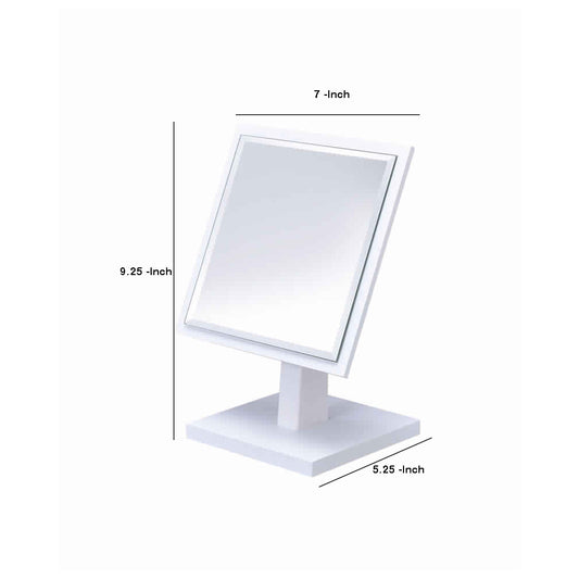 Square Makeup Mirror With Wooden Pedestal Base,... Square Makeup Mirror With Wooden Pedestal Base, White And Silver By Benzara