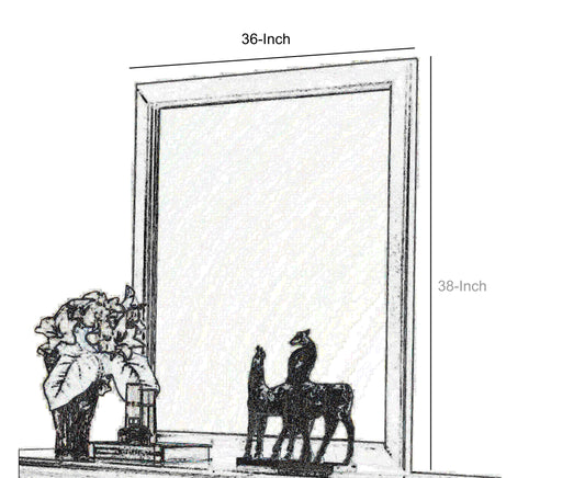 35 Inch Transitional Style Wooden Frame Mirror,... 35 Inch Transitional Style Wooden Frame Mirror, Gray By Benzara
