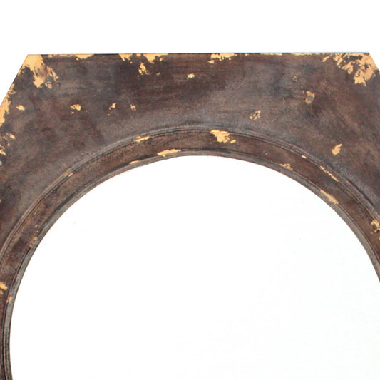 Wooden Wall Mirror With Grotto Circular Shape, ... Wooden Wall Mirror With Grotto Circular Shape, Brown By Benzara