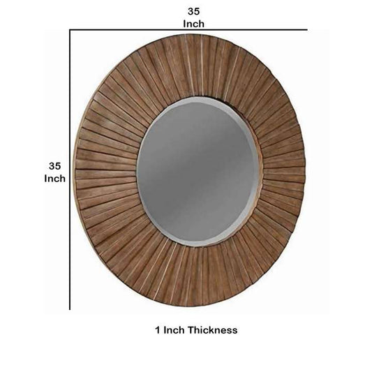 Transitional Sunburst Round Mirror With Wooden ... Transitional Sunburst Round Mirror With Wooden Frame, Brown By Benzara
