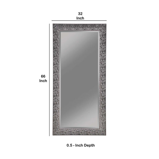Rectangular Beveled Accent Floor Mirror With Gl... Rectangular Beveled Accent Floor Mirror With Glitter Mosaic Pattern, Gray By Benzara