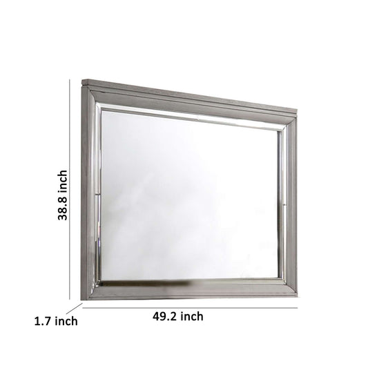 Wooden Framed Mirror With Rectangular Shape, Si... Wooden Framed Mirror With Rectangular Shape, Silver And White By Benzara