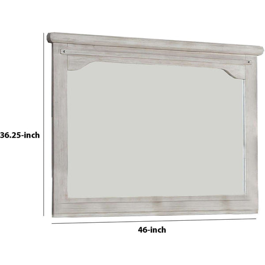 Rectangular Molded Wooden Frame Dresser Top Mir... Rectangular Molded Wooden Frame Dresser Top Mirror, White And Silver By Benzara
