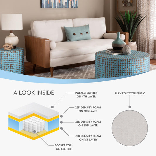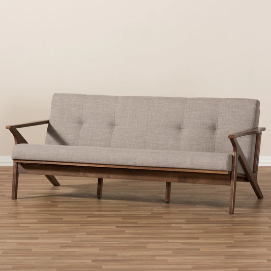Baxton Studio Harleson Mid-Century Modern Beige... Baxton Studio Harleson Mid-Century Modern Beige Fabric and Walnut Brown Wood Sofa