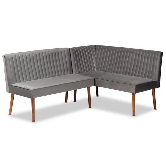 Baxton Studio Stewart Mid-Century Modern Grey V... Baxton Studio Stewart Mid-Century Modern Grey Velvet Upholstered And Walnut Brown Finished Wood 2-Piece Dining Nook Banquette Set