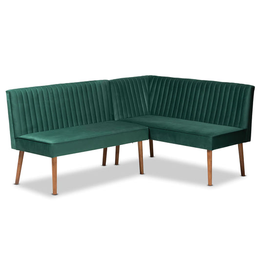 Baxton Studio Alvis Mid-Century Modern Emerald ... Baxton Studio Alvis Mid-Century Modern Emerald Green Velvet Upholstered And Walnut Brown Finished Wood 2-Piece Dining Nook Banquette Set