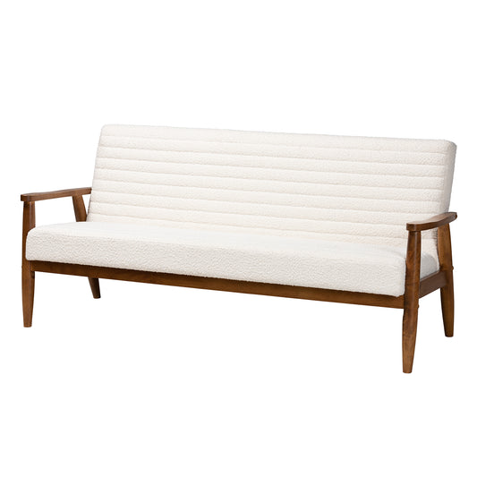 Baxton Studio Stratton Mid-Century Modern Cream... Baxton Studio Stratton Mid-Century Modern Cream Boucle Fabric and Walnut Brown Finished Wood Sofa