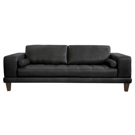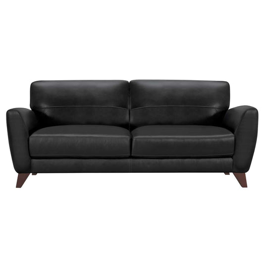 Wynne Contemporary Sofa in Genuine Black Leathe... Wynne Contemporary Sofa in Genuine Black Leather with Brown Wood Legs By Armen Living