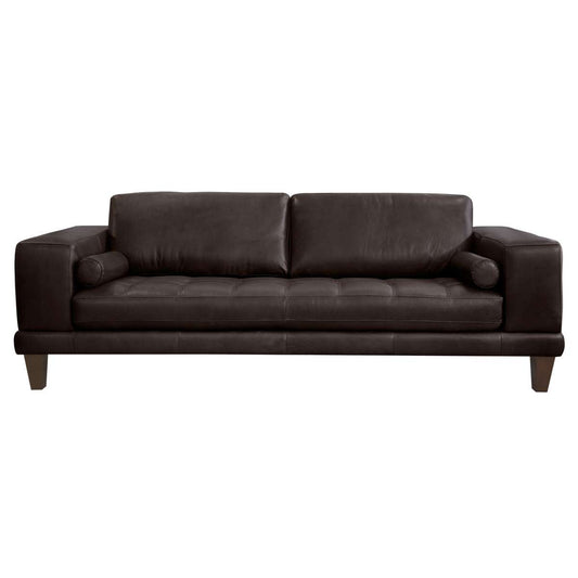 Zanna Contemporary Sofa in Genuine Dark Brown L... Zanna Contemporary Sofa in Genuine Dark Brown Leather with Brown Wood Legs By Armen Living
