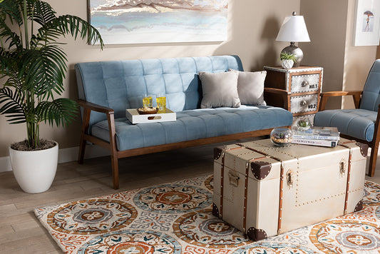 Baxton Studio Asta Mid-Century Modern Light Blu... Baxton Studio Asta Mid-Century Modern Light Blue Velvet Fabric Upholstered Walnut Finished Wood Sofa
