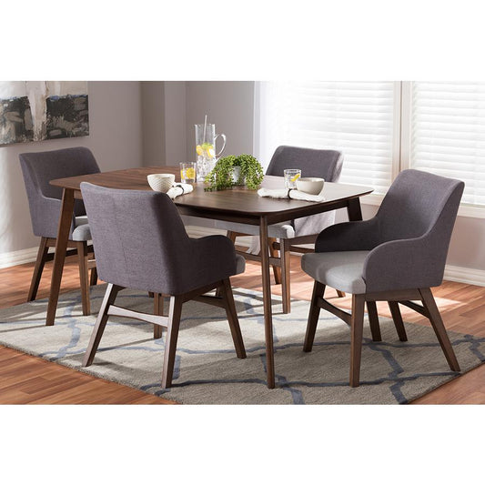 Baxton Studio Nexus Mid-Century Modern Dark Gre... Baxton Studio Nexus Mid-Century Modern Dark Grey Fabric Upholstered and Walnut Brown Finished Wood 5-Piece Dining Set