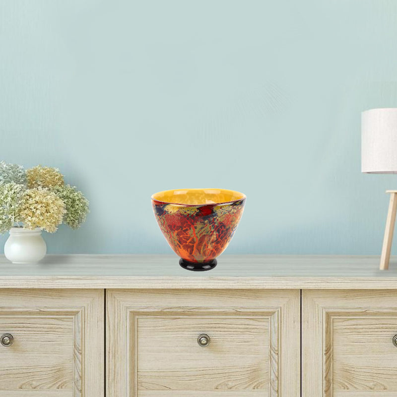 Beautify your kitchen and augment your cooking and dining experience with this fantastic bowl. The bowl is made from high grade glass, giving it both remarkable looks and durability. It will refresh your kitchen, and its style and outstanding multi-color color will provide you with something lovely to look at when you serve your delicious food, or drinks. Its components are all natural and environmentally sustainable. There is no better display for your food, appetizers, main or side dishes, breads or desserts. When it comes to measurement, its height is 9”, its width 11”, and its depth 11 inches, and it weighs 8 pounds. Colors may also vary from piece to piece, making each one a unique work of art. Enjoy the looks and functionality, as well as the magnificent display while serving and hosting your guests.