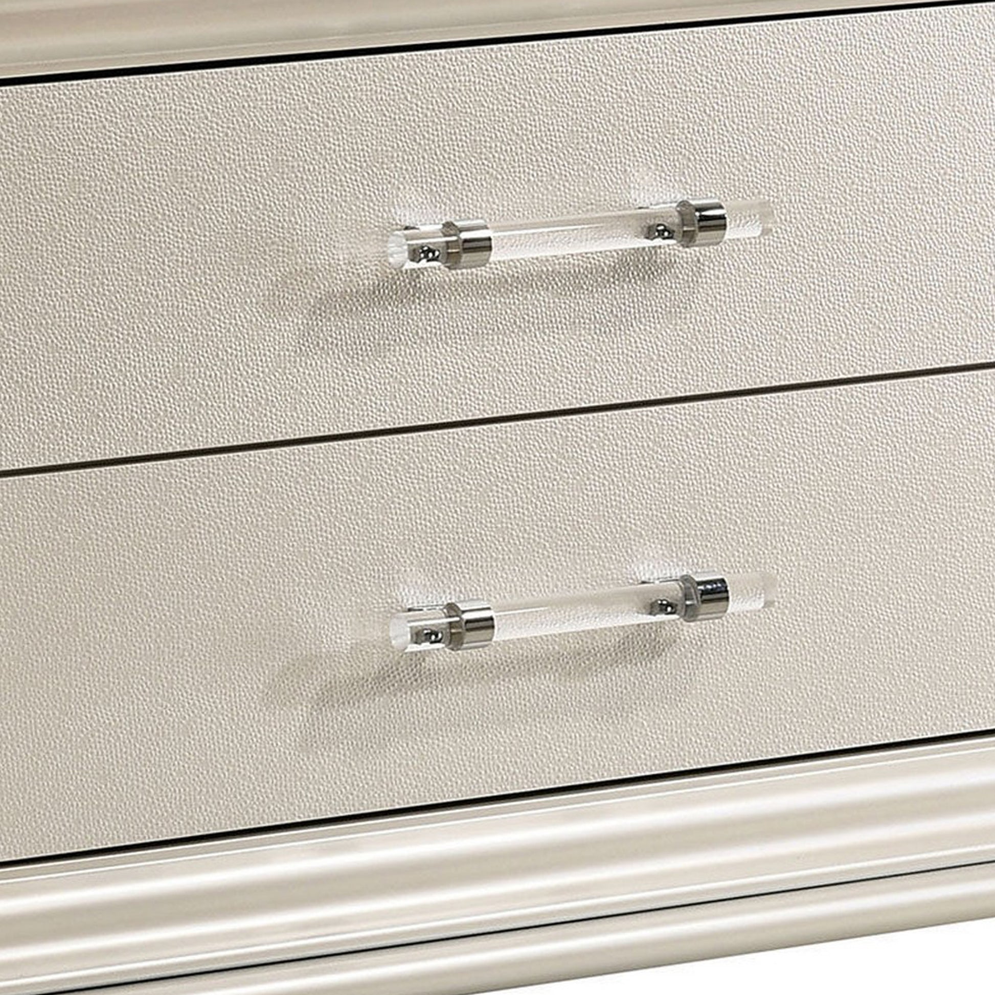 2 Drawer Nightstand With Acrylic Feet And Crystal Accents Silver By Benzara