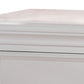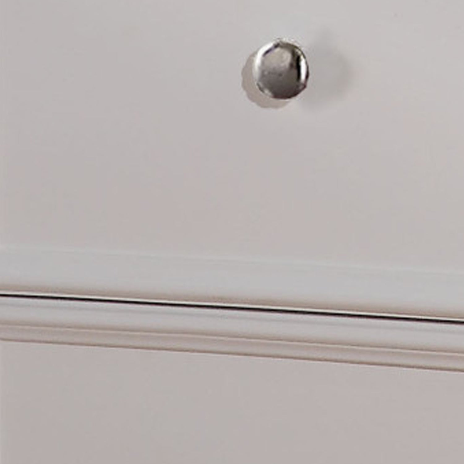 Reduce the amount of clutter beside your bed with this exquisite white nightstand. It features two drawers with ample storage space. Crafted from wood, this beautiful night stand exhibits a transitional touch. It features metal drawer knobs and wooden chamfered legs.