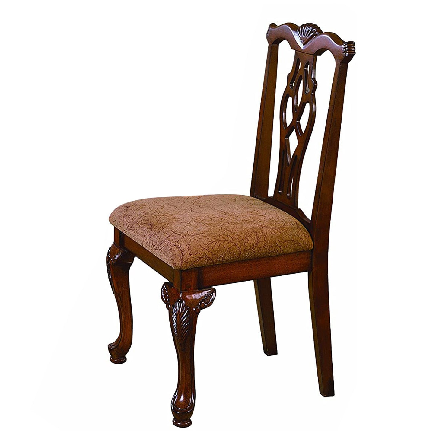 Details like carved accents and curved cabriole legs makes this Desk and Chair Set a perfect addition in any traditional setting. The desk features spacious top and two storage drawers, while chair features patterned fabric upholstered seat and decorative fiddle backrest.