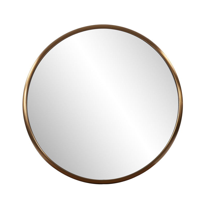 Inspired by a minimalist industrial aesthethic, the Antiqued Brush Brass Round Wall Mirror is a distinguished focal point for your entryway, hallway, bathroom, or industrial loft. Made from high-quality stainless steel in a unique brushed brass finish, this stylish mirror will blend in seamlessly with your home decor and enhance its design sensibility. A well made, sturdy stainless steel, great wall mirror that is updated, classic, and not fussy. 20" x 20" x 1"