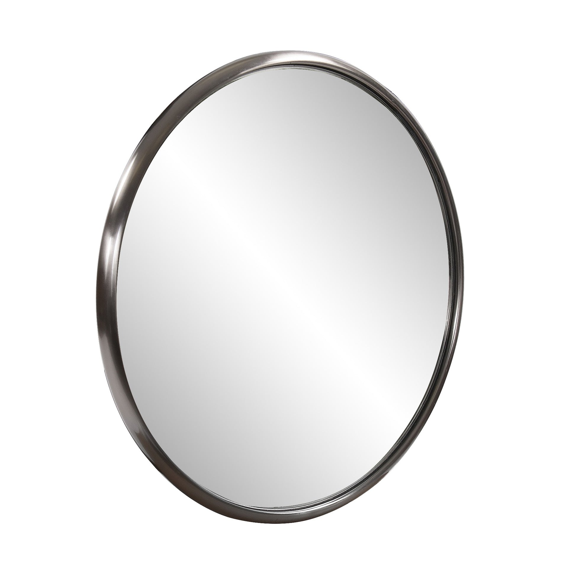 Inspired by a minimalist industrial aesthethic, the Antiqued Brush Brass Round Wall Mirror is a distinguished focal point for your entryway, hallway, bathroom, or industrial loft. Made from high-quality stainless steel in a unique brushed brass finish, this stylish mirror will blend in seamlessly with your home decor and enhance its design sensibility. A well made, sturdy stainless steel, great wall mirror that is updated, classic, and not fussy. 20" x 20" x 1"