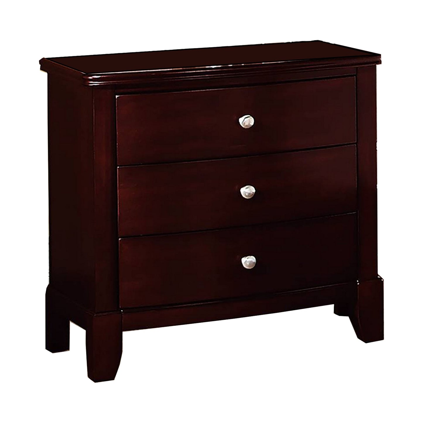 26 Inches 3 Drawer Wooden Nightstand With Chamfered Legs Brown By Benzara