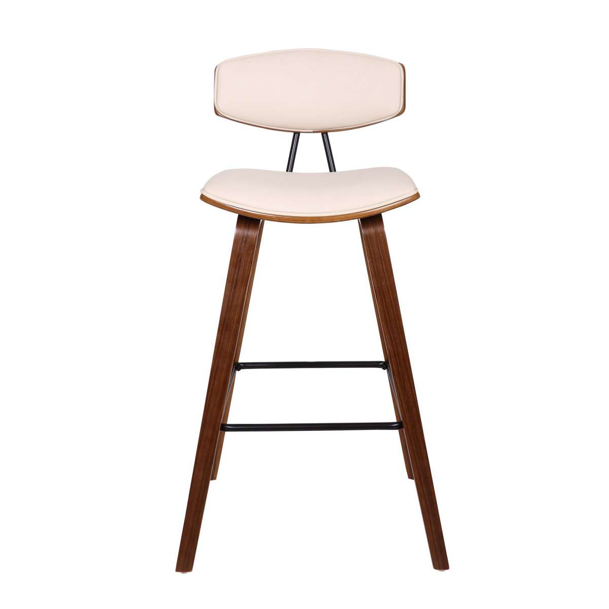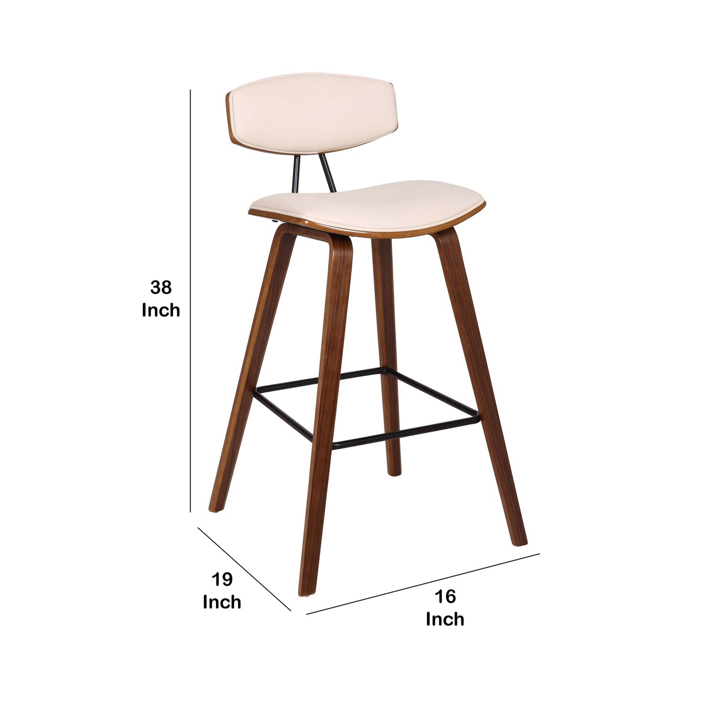 28.5 Inches Contoured Seat Leatherette Barstool, Cream By Benzara