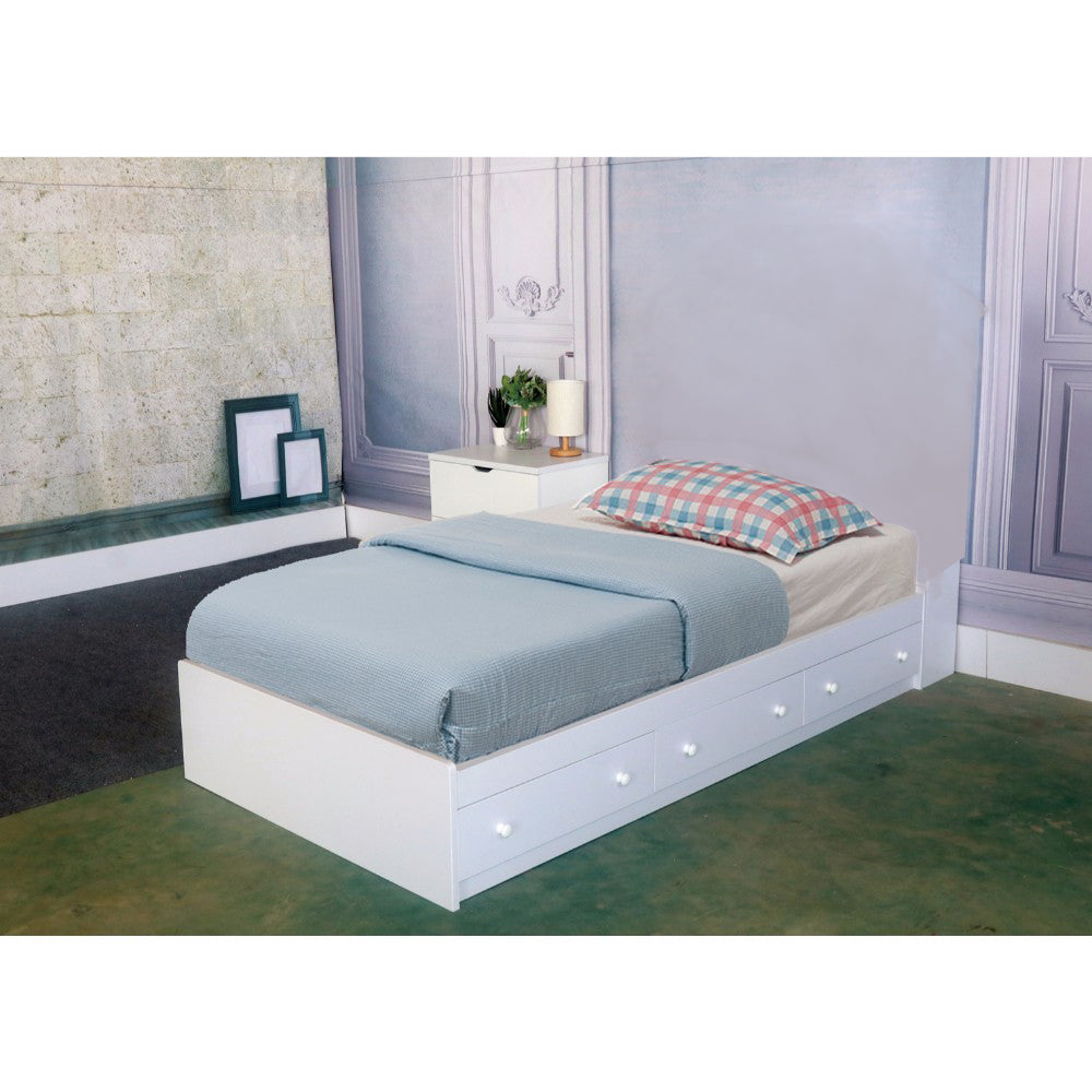 3 Drawer Contemporary Wooden Twin Chest Bed White By Benzara