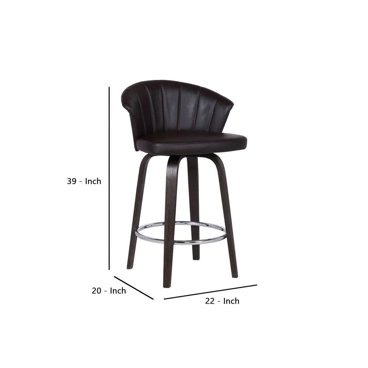 Give your kitchen island a modern flair with this barstool sturdily constructed from solid wood. The curved channel stitched backrest and firm padded seat enhance the ergonomics of the stool. This stool is as timeless as it is comfortable with its swivel mechanism and faux leather upholstery to create a sleek aesthetic.