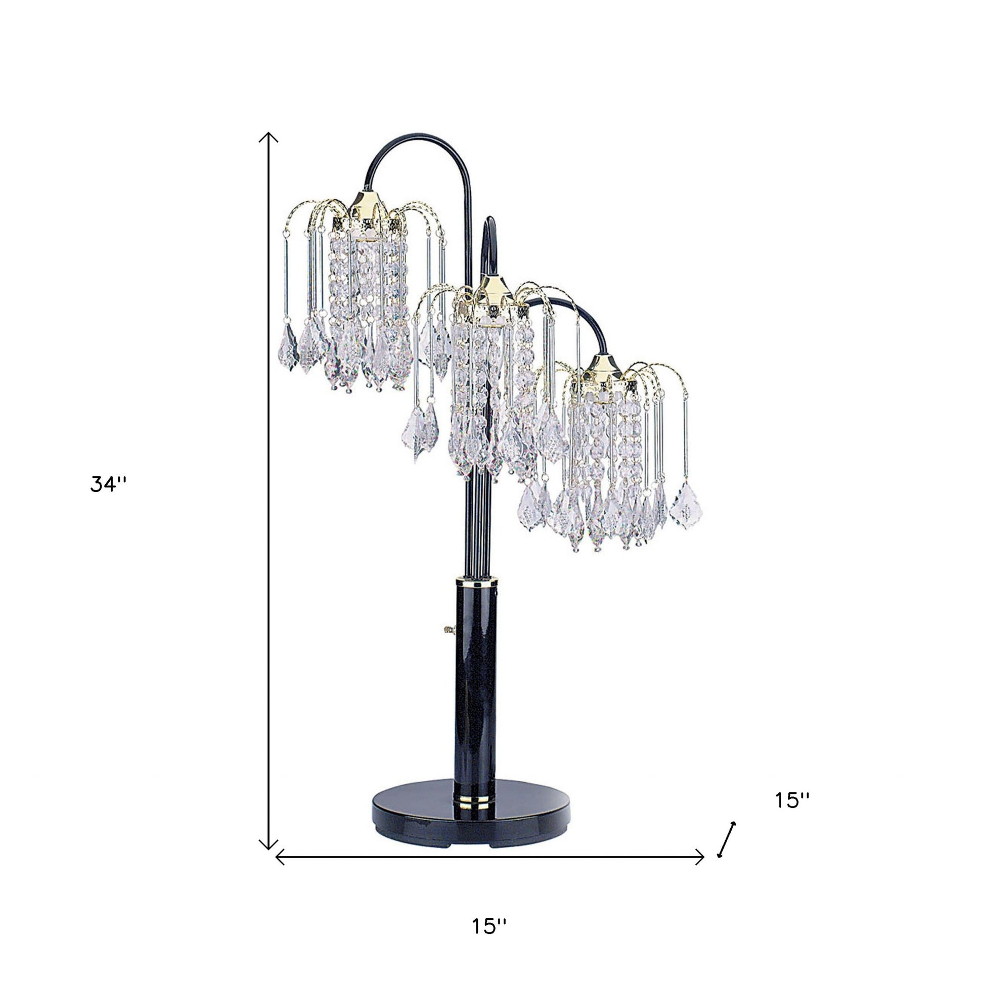 34" Black Metal Three Light Chandelier Table Lamp By Homeroots
