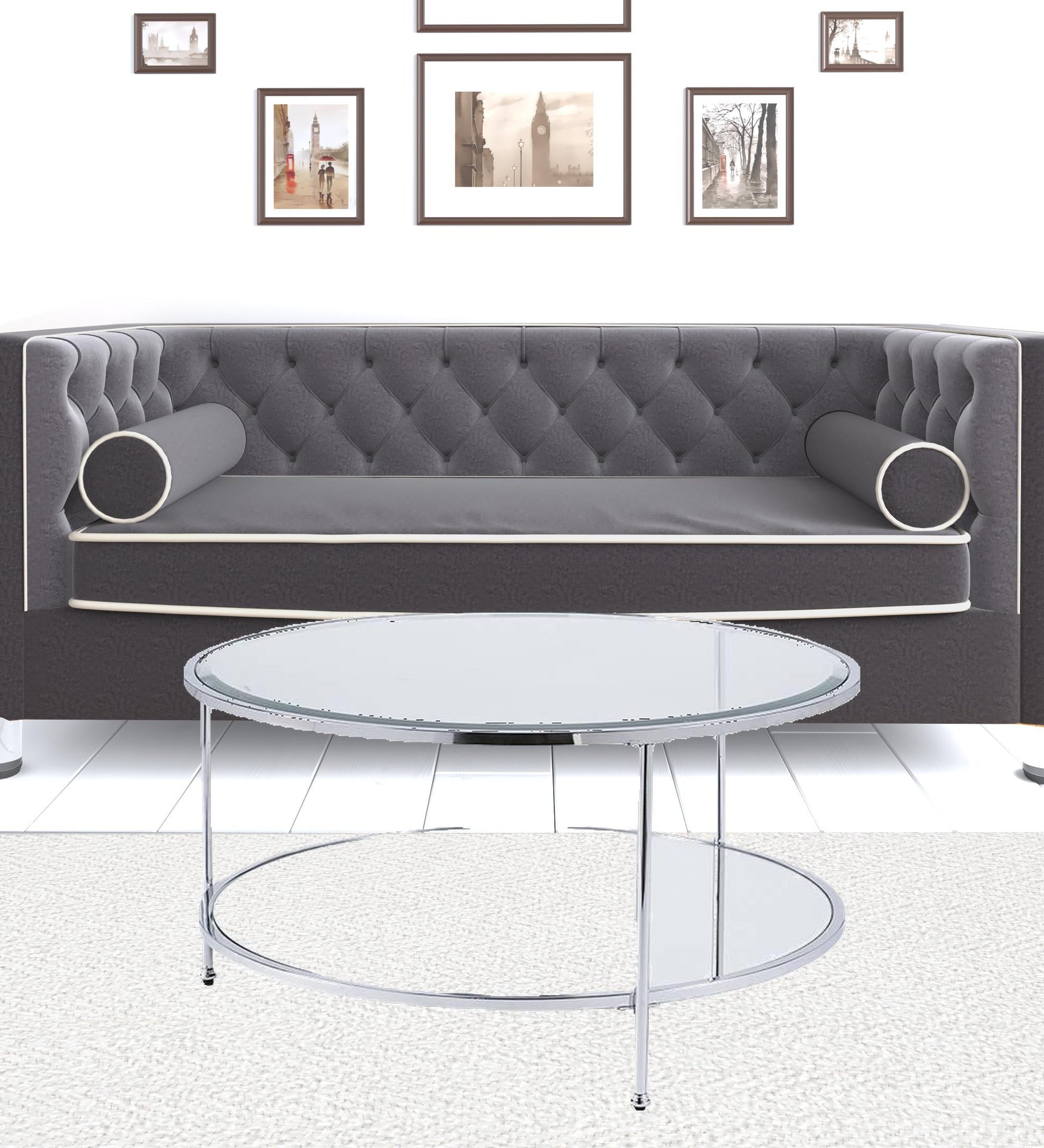 34" Chrome Glass And Metal Round Mirrored Coffee Table By Homeroots